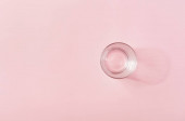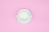 Filiżanka herbaty na pastelowy różowy tło. Żeński obszaru roboczego. Mieszkanie świeckich, minimalne pojęcie, widok z góry.