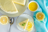 Kompozycja z cytryny smaczne ciasto na drewnianym stole