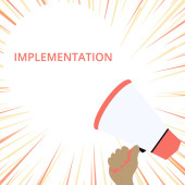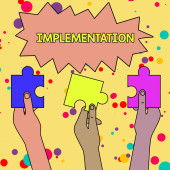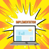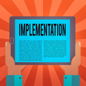 Znak tekstowy pokazujący Implementację. Konceptualne zdjęcie Proces tworzenia czegoś aktywnego lub skutecznego