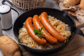 Zdjęcie "Płyta z kapustą pyszne i kiełbaski z grilla na drewnianym stole" może być wykorzystywane do celów osobistych i komercyjnych zgodnie z warunkami zakupionej licencji Royalty-free. Obraz jest dostępny do pobrania w jakości wysokiej rozdzielczości do 5760x3840.