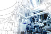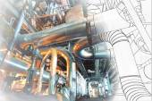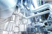 model szkieletowy komputer cad projekt koncepcji obrazu. rurociągów przemysłowych w fabryce w połączeniu z ide rozwiązanie roślina rysunek, smart