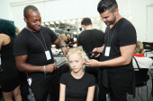 Nowy Jork - 10 lutego: model dostaje gotowy za kulisami dla Victora de souza kolekcja w hotelu strand podczas mercedes-benz fashion week 10 lutego 2013 r. w Nowym Jorku