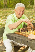 aktywny emerytowany seniorów, dwóch starych ludzi gra w szachy w parku