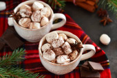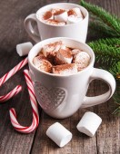 Gorąca czekolada to tradycyjny napój zimowy. Tło świąteczne.