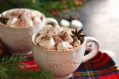 Gorąca czekolada to tradycyjny napój zimowy. Tło świąteczne.