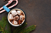 Gorąca czekolada to tradycyjny napój zimowy. Tło świąteczne.