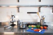 Kuchenka kuchnia counter z pieca ze stali nierdzewnej.