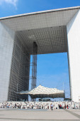 Zdjęcie "Paryż (Francja). Wielki Łuk obrony w dzielnicy La Défense, w pobliżu Paryża." może być wykorzystywane do celów osobistych i komercyjnych zgodnie z warunkami zakupionej licencji Royalty-free. Obraz jest dostępny do pobrania w jakości wysokiej rozdzielczości do 5760x3840.