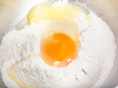 Gotowanie z pie - kuchnia procesor ugniata ciasta z jajkiem