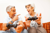 Senior para w 60 zabawy w domu - wesoły poślubiona para portret, pojęć dotyczących senority i relacji