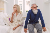 Senior para w 60 zabawy w domu - wesoły poślubiona para portret, pojęć dotyczących senority i relacji