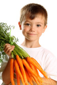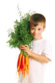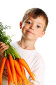 zdrowe odżywianie. hiszpanin małego chłopca gospodarstwa kilka marchew