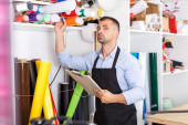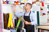 Projektant człowieka i drukowania operatora z papieru wydruku w druku produkcyjnego