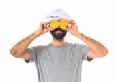 lekkoatletycznego młody człowiek posiadający pomarańczowy
