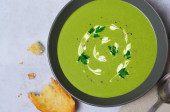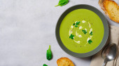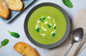 Zupa szpinakowa w misce, widok z góry, Wegetariańska