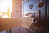 człowiek ręcznie otwórz skrzynk z kluczem w przód domu zbliżenie