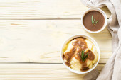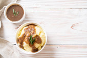 Zdjęcie "domowe puree ziemniaczane z sosem sosem sosowym" może być wykorzystywane do celów osobistych i komercyjnych zgodnie z warunkami zakupionej licencji Royalty-free. Obraz jest dostępny do pobrania w jakości wysokiej rozdzielczości do 5760x3840.