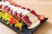 świeżego tuńczyka surowego z sałatką warzywną i sosem - zdrowa żywność