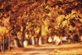 żółty jesienny Las Krajobraz / piękne drzewa z żółtym listowiem, w lesie, krajobraz października jesień, sezonowe krajobraz