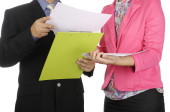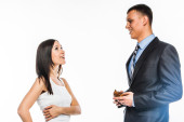 Młoda Azjatka interesu dyskusji na temat pracy z jej szef w parku