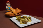 Danie cafreal indyjski kurczak marynowane z dużą ilością leaves(Cilantro) kolendra, imbir, czosnek, sok z limonki oraz suche przyprawy i podawany z chlebem