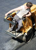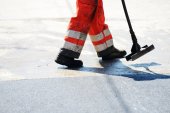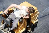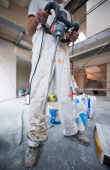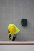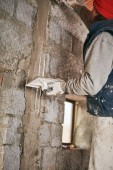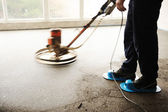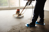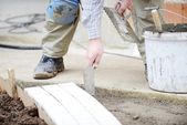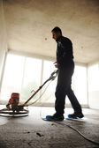 Utożsamianie i bilansowania świeże cementu na podłodze, przez jednego pracownika