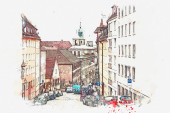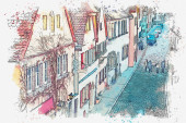 Zdjęcie "Szkic akwarela czy ilustracja pięknej ulicy w Rothenburg ob der Tauber, w Niemczech." może być wykorzystywane do celów osobistych i komercyjnych zgodnie z warunkami zakupionej licencji Royalty-free. Obraz jest dostępny do pobrania w jakości wysokiej rozdzielczości do 5760x3840.