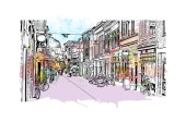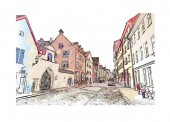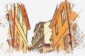 Szkic akwarela czy ilustracja pięknej ulicy w Rothenburg ob der Tauber, w Niemczech.