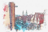 Zdjęcie "Szkic akwarela czy ilustracja pięknej ulicy w Rothenburg ob der Tauber, w Niemczech." może być wykorzystywane do celów osobistych i komercyjnych zgodnie z warunkami zakupionej licencji Royalty-free. Obraz jest dostępny do pobrania w jakości wysokiej rozdzielczości do 5760x3840.