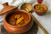 Goan curry owoce morza podawane tradycyjnie z soku kokum i małe krewetki