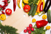 pokrojone w plastry ogórki i pomidory na desce z ramą He