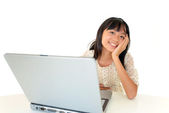 Zdjęcie "Uśmiechnięta nastolatka korzystająca z laptopa" może być wykorzystywane do celów osobistych i komercyjnych zgodnie z warunkami zakupionej licencji Royalty-free. Obraz jest dostępny do pobrania w jakości wysokiej rozdzielczości do 5760x3840.