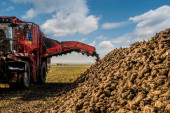 rolnych pojazdu do zbioru buraków cukrowych w słoneczny dzień jesieni