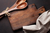 Zdjęcie "Deska do krojenia Vintage z ręcznikiem. Kuchnia Gotowanie koncepcję. Miejsca na tekst" może być wykorzystywane do celów osobistych i komercyjnych zgodnie z warunkami zakupionej licencji Royalty-free. Obraz jest dostępny do pobrania w jakości wysokiej rozdzielczości do 5760x3840.