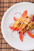 ravioli z delikatną groch z oliwy z oliwek, pomidory i rzodkiewki