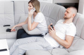 Człowiek przy użyciu telefonu. Kobieta, patrząc przez dokumenty. Koncepcja domu styl życia