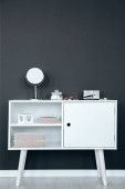 Zdjęcie "Szafka lampy na i wazon z Burgundii gladiolas przez w wnętrzu salonu meble seksowny szary trzy szuflady. Prawdziwe zdjęcie." może być wykorzystywane do celów osobistych i komercyjnych zgodnie z warunkami zakupionej licencji Royalty-free. Obraz jest dostępny do pobrania w jakości wysokiej rozdzielczości do 5760x3840.