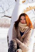 wesoły kaukaski kobieta młody pozowanie w mroźną zimę