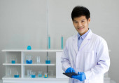 Portret profesjonalny inżynier Azjatka w gogle montaż płyty dla komputera