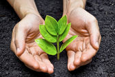 Kiełbik, małym roślin z drzewa trzymając się za ręce. Koncepcja Zapisz na świecie, problemy środowiskowe, miłość natura, uzdrowić świat.