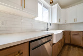 Zdjęcie "Wzór w biało -szara kuchnia pokój z urządzenia ze stali nierdzewnej nowoczesnym, kwarcu blaty i metra dachówka backsplash. " może być wykorzystywane do celów osobistych i komercyjnych zgodnie z warunkami zakupionej licencji Royalty-free. Obraz jest dostępny do pobrania w jakości wysokiej rozdzielczości do 5760x3840.