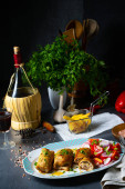 Wyśmienite pierożki z oliwy z oliwek, pomidory i rzodkiewki