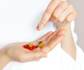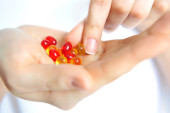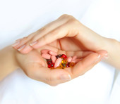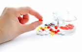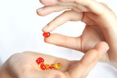 młoda kobieta, biorąc pigułki. koncentruje się na pigułki