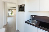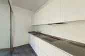 Nowoczesna kuchnia biały detal w mieszkaniu, nikt nie wewnątrz