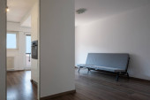 Otwarta przestrzeń z kuchnia i pokój dzienny. Nikt nie wewnątrz