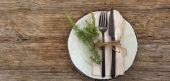 Zdjęcie "Świąteczne nakrycie na świąteczny obiad na tle rustykalnym starym. Świąteczne nakrycie stołu w stylu skandynawskim z naturalnymi dekoracjami na drewnianym stole. Dekoracje swiateczne. Widok z góry. Miejsce." może być wykorzystywane do celów osobistych i komercyjnych zgodnie z warunkami zakupionej licencji Royalty-free. Obraz jest dostępny do pobrania w jakości wysokiej rozdzielczości do 5760x3840.