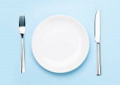 Zdjęcie "Nakrycie stołu. Pusta płyta, nóż, widelec i łyżki. Widok z góry i położyć płasko z kopia miejsce" może być wykorzystywane do celów osobistych i komercyjnych zgodnie z warunkami zakupionej licencji Royalty-free. Obraz jest dostępny do pobrania w jakości wysokiej rozdzielczości do 5760x3840.