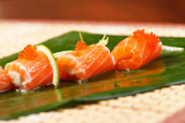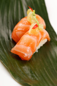 Zdjęcie "dwa nigiridzusi na liściu bambusa z cytryny 3" może być wykorzystywane do celów osobistych i komercyjnych zgodnie z warunkami zakupionej licencji Royalty-free. Obraz jest dostępny do pobrania w jakości wysokiej rozdzielczości do 5760x3840.
