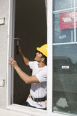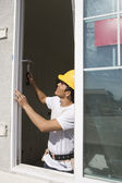 Włamywacz przy użyciu łomu, aby dostać się do domu