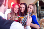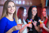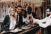 Aktywny wypoczynek. Dziewczyny i chłopaki. Komunikować się różnych ras. Bar. Młodych ludzi. Odpoczynku. Pić napojów alkoholowych. Baw się dobrze. Razem. Clubbing. Życie nocne. Koktajle. Radosny. Podbródek podbródek. Pozytywne. Emocje.